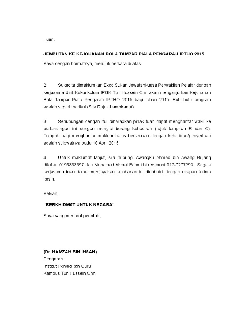 Surat Jemputan Pegawai Sukan 1 Pdf