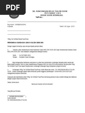 Contoh Surat Mohon Tajaan Sumbangan Sukan Sekolah Pdf